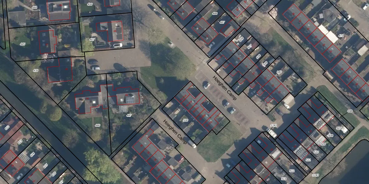 Het perceel waarop Hoeghen Camp 41 staat heeft een oppervlakte van 630 m². Dit is een groot perceel. De perceeloppervlakte wordt geregistreerd door het Kadaster. Gedetailleerde informatie over de maten van dit perceel kunt u vinden in het rapport Kadastrale kaart met maatvoering van Hoeghen Camp 41.