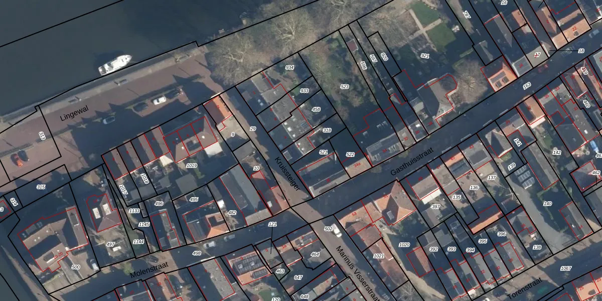 Het adres ligt op het perceel HKL00-C-318, dat zich in de kadastrale gemeente Heukelum bevindt. Het perceel is 130 m² groot. Dat is kleiner dan de gemiddelde perceeloppervlakte in Heukelum, dat op 2629,79 m² ligt. Het kleinste perceel in de kadastrale gemeente is 0 m² groot. De grootste perceeloppervlakte is 36,0 ha. Er zijn geen andere adressen aanwezig op het perceel. In de Basisregistratie Kadaster (BRK) werden de grenzen van het perceel geregistreerd op 22-01-1998.