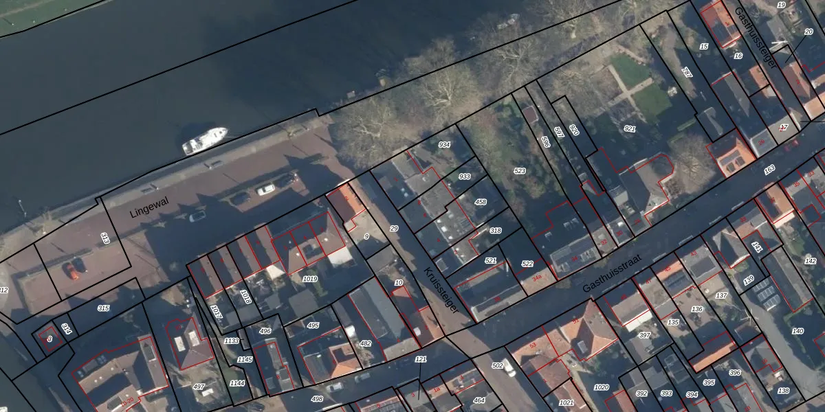 Het adres is gelegen op perceel 933 in de sectie C en de kadastrale gemeente Heukelum. De kadastrale aanduiding is aldus HKL00-C-933. Het perceel is kleiner dan gemiddeld in Heukelum. Het perceel is 142 m² groot, terwijl het gemiddelde ligt op 2629,79 m². Het grootste perceel in de kadastrale gemeente is 36,0 ha. Het kleinste perceel heeft een oppervlakte van 0 m². Op het perceel zijn 2 adressen aanwezig. In de Basisregistratie Kadaster (BRK) werden de grenzen van het perceel geregistreerd op 17-03-2011.