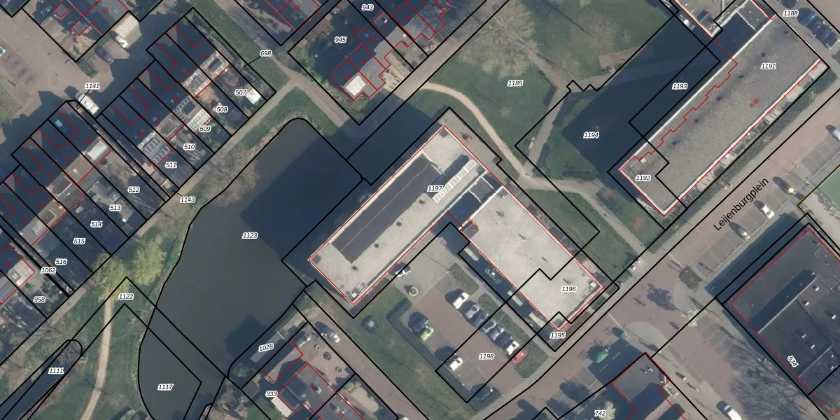 Het perceel waarop Leijenburgplein 53 staat heeft een oppervlakte van 1595 m². Dit is een zeer groot perceel. De perceeloppervlakte wordt geregistreerd door het Kadaster. Gedetailleerde informatie over de maten van dit perceel kunt u vinden in het rapport Kadastrale kaart met maatvoering van Leijenburgplein 53.