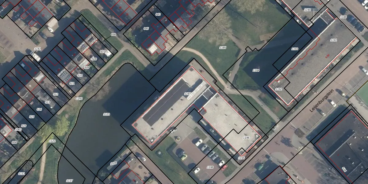 Het perceel waarop Leijenburgplein 62 staat heeft een oppervlakte van 1595 m². Dit is een zeer groot perceel. De perceeloppervlakte wordt geregistreerd door het Kadaster. Gedetailleerde informatie over de maten van dit perceel kunt u vinden in het rapport Kadastrale kaart met maatvoering van Leijenburgplein 62.