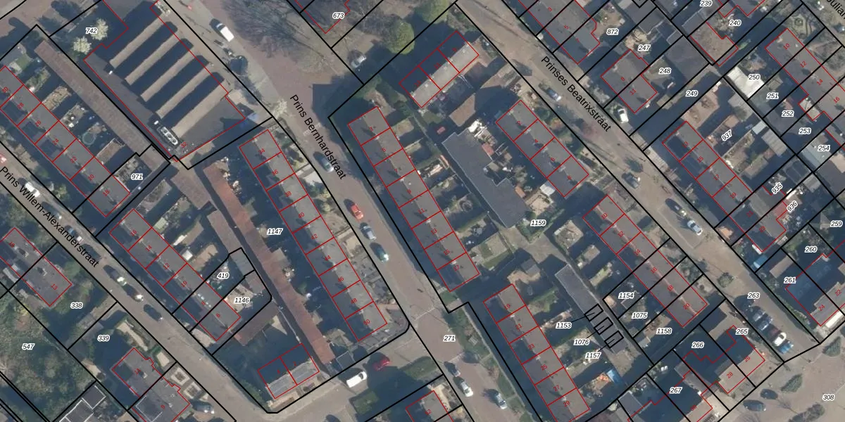 Het perceel waarop Prins Bernhardstraat 11 staat heeft een oppervlakte van 3999 m². Dit is een zeer groot perceel. De perceeloppervlakte wordt geregistreerd door het Kadaster. Gedetailleerde informatie over de maten van dit perceel kunt u vinden in het rapport Kadastrale kaart met maatvoering van Prins Bernhardstraat 11.