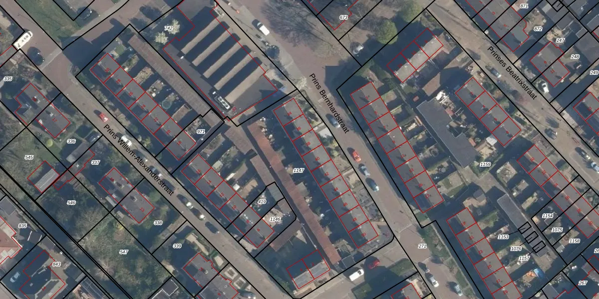 Het perceel waarop Prins Bernhardstraat 38 staat heeft een oppervlakte van 3476 m². Dit is een zeer groot perceel. De perceeloppervlakte wordt geregistreerd door het Kadaster. Gedetailleerde informatie over de maten van dit perceel kunt u vinden in het rapport Kadastrale kaart met maatvoering van Prins Bernhardstraat 38.