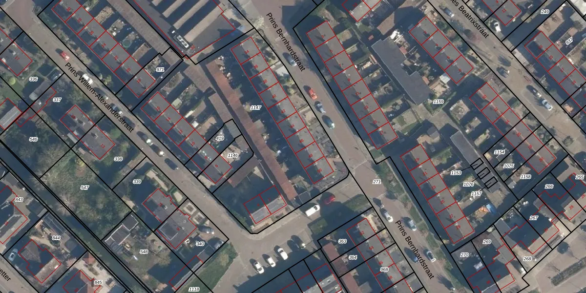 Het perceel waarop Prins Bernhardstraat 46 staat heeft een oppervlakte van 3476 m². Dit is een zeer groot perceel. De perceeloppervlakte wordt geregistreerd door het Kadaster. Gedetailleerde informatie over de maten van dit perceel kunt u vinden in het rapport Kadastrale kaart met maatvoering van Prins Bernhardstraat 46.