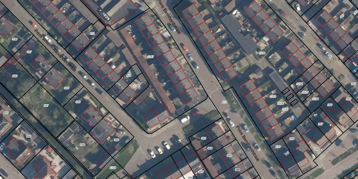 Het perceel waarop Prins Bernhardstraat 48 staat heeft een oppervlakte van 3476 m². Dit is een zeer groot perceel. De perceeloppervlakte wordt geregistreerd door het Kadaster. Gedetailleerde informatie over de maten van dit perceel kunt u vinden in het rapport Kadastrale kaart met maatvoering van Prins Bernhardstraat 48.