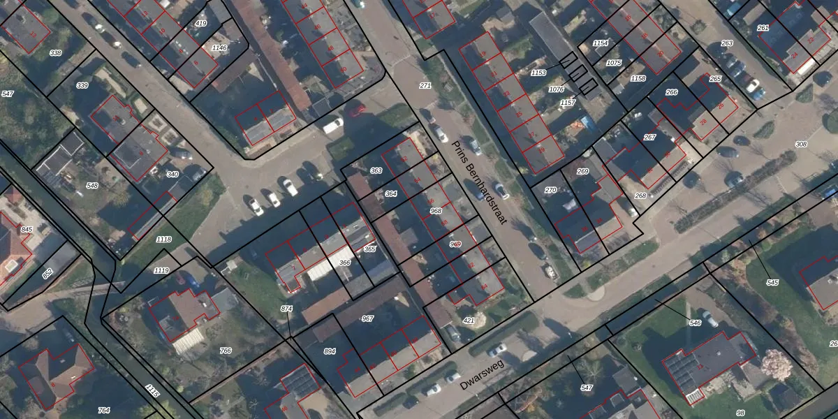Het perceel waarop Prins Bernhardstraat 56 staat heeft een oppervlakte van 275 m². Dit is een middelgroot perceel. De perceeloppervlakte wordt geregistreerd door het Kadaster. Gedetailleerde informatie over de maten van dit perceel kunt u vinden in het rapport Kadastrale kaart met maatvoering van Prins Bernhardstraat 56.