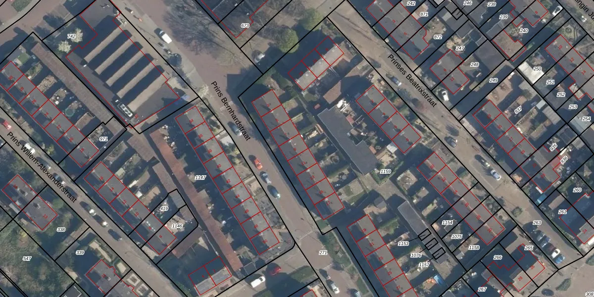 Het perceel waarop Prins Bernhardstraat 9 staat heeft een oppervlakte van 3999 m². Dit is een zeer groot perceel. De perceeloppervlakte wordt geregistreerd door het Kadaster. Gedetailleerde informatie over de maten van dit perceel kunt u vinden in het rapport Kadastrale kaart met maatvoering van Prins Bernhardstraat 9.