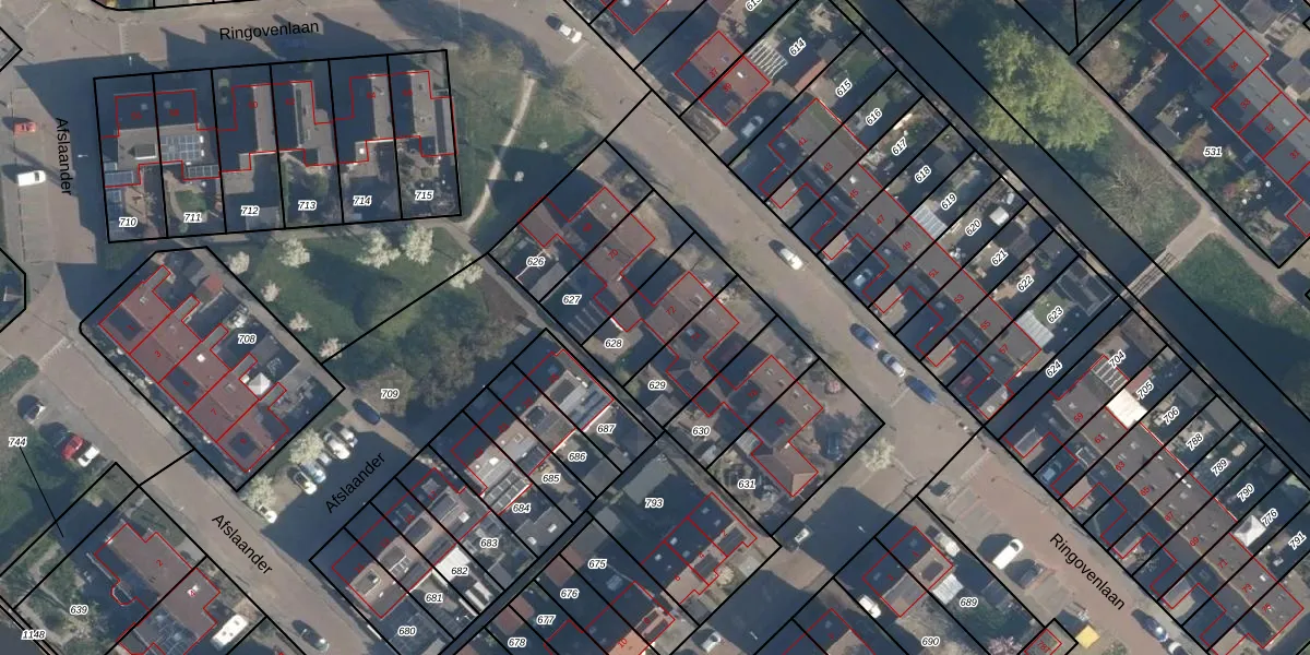 Gebruik de zoekbalk of klik op een perceel voor informatie over de adressen binnen dit perceel.