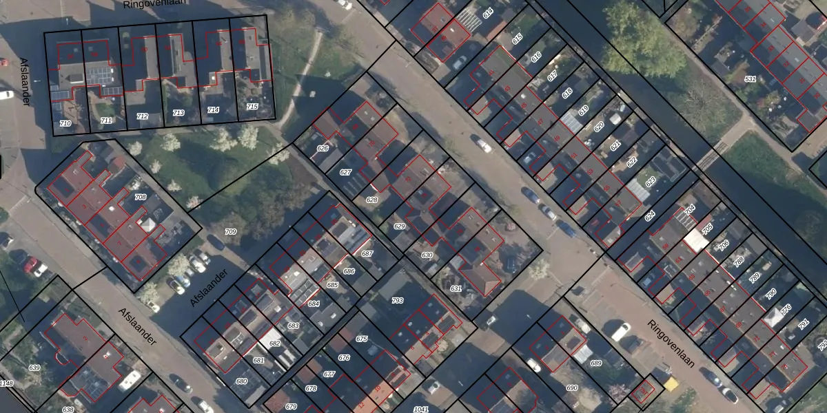Gebruik de zoekbalk of klik op een perceel voor informatie over de adressen binnen dit perceel.