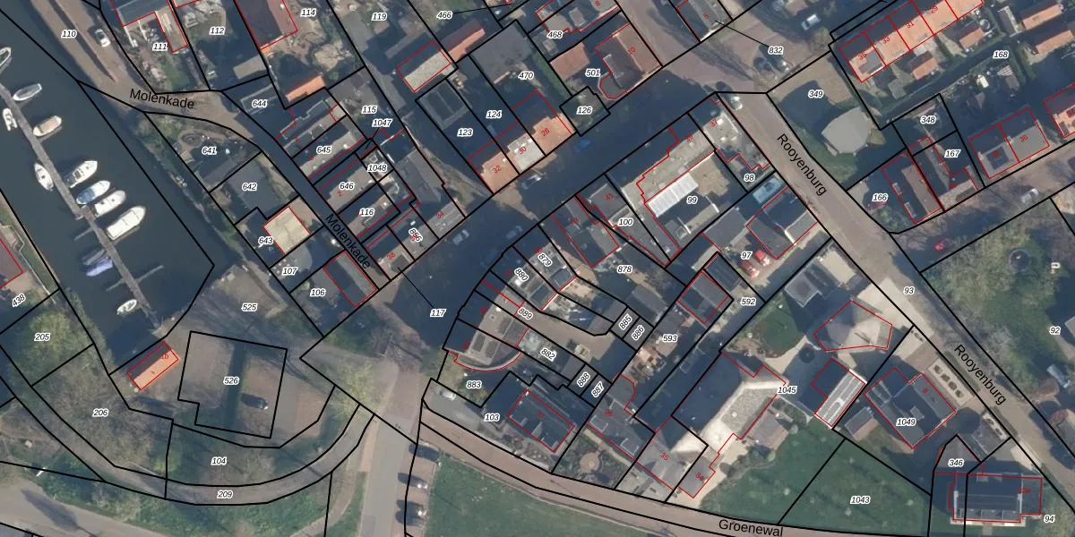 Gebruik de zoekbalk of klik op een perceel voor informatie over de adressen binnen dit perceel.