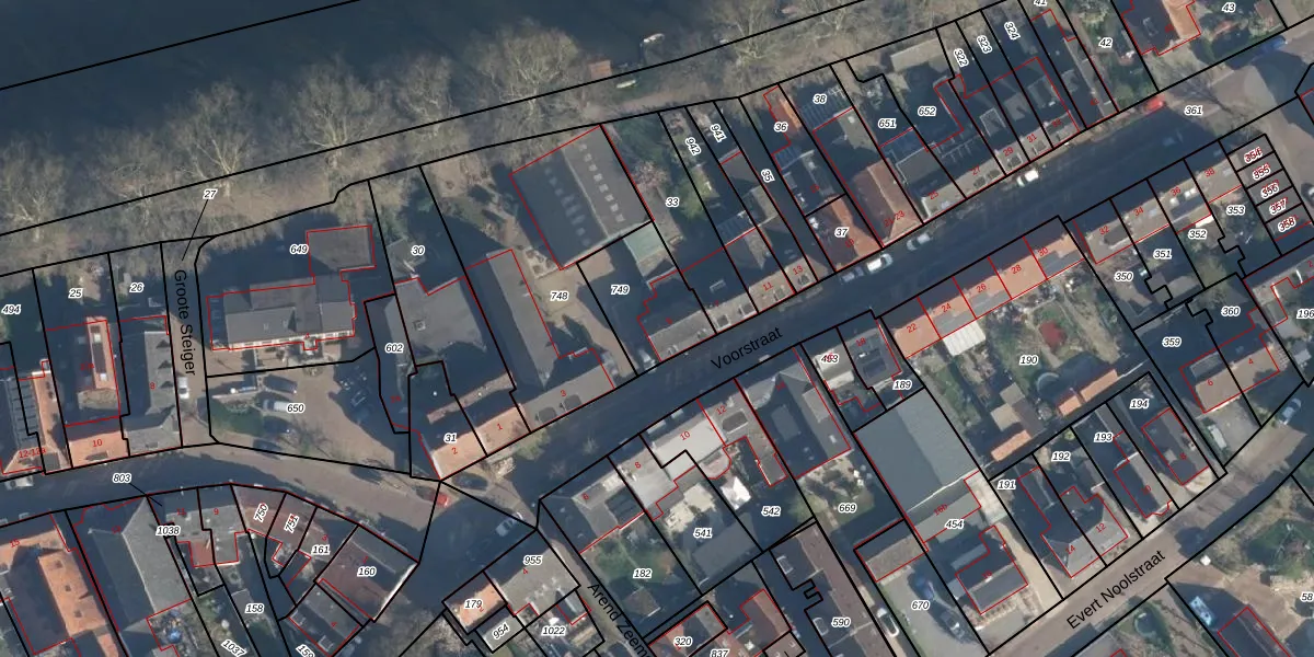 Het perceel waarop Voorstraat 5 staat heeft een oppervlakte van 259 m². Dit is een middelgroot perceel. De perceeloppervlakte wordt geregistreerd door het Kadaster. Gedetailleerde informatie over de maten van dit perceel kunt u vinden in het rapport Kadastrale kaart met maatvoering van Voorstraat 5.