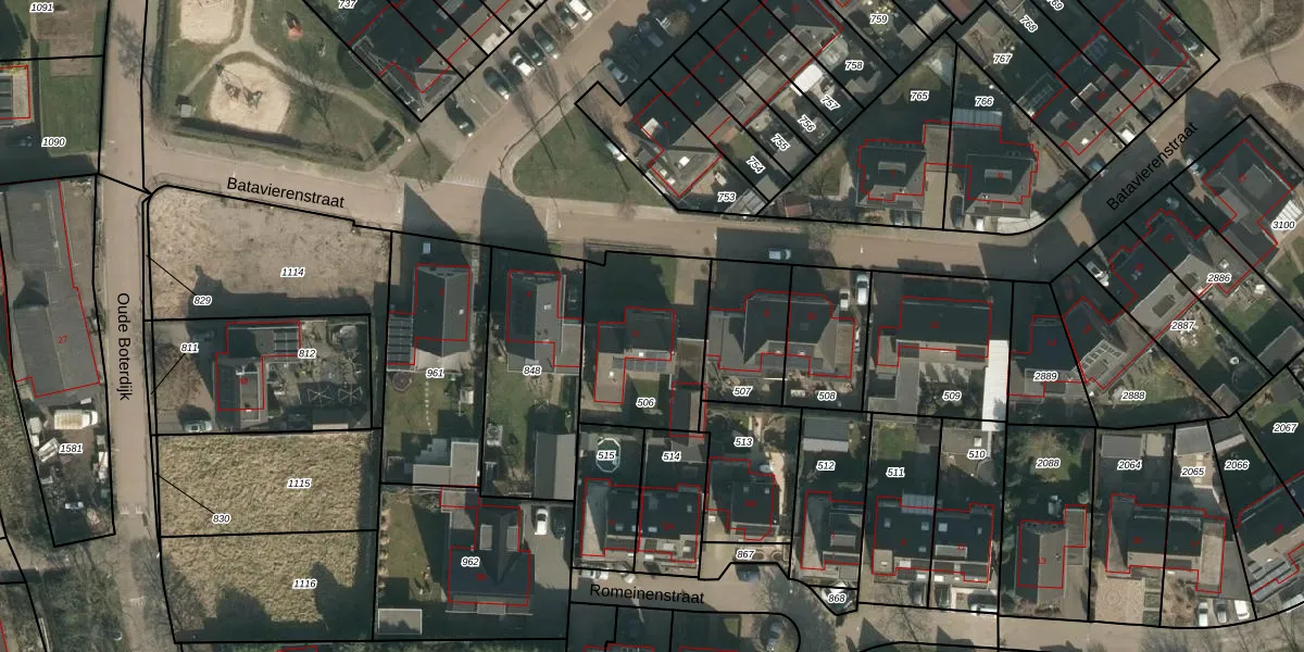 Het perceel waarop Batavierenstraat 6 staat heeft een oppervlakte van 500 m². Dit is een groot perceel. De perceeloppervlakte wordt geregistreerd door het Kadaster. Gedetailleerde informatie over de maten van dit perceel kunt u vinden in het rapport Kadastrale kaart met maatvoering van Batavierenstraat 6.