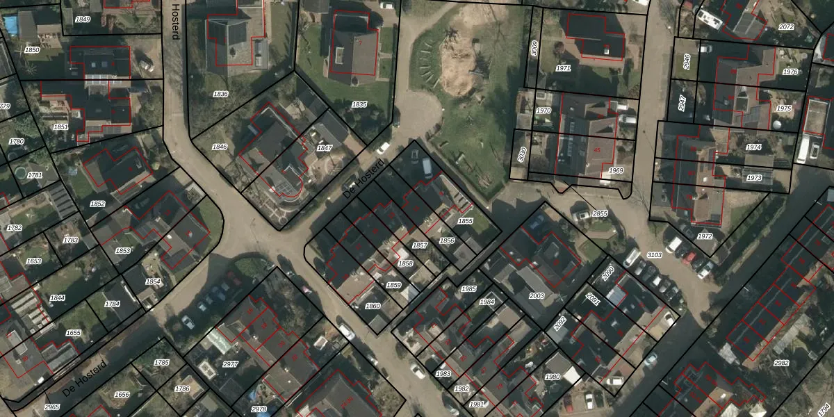 Gebruik de zoekbalk of klik op een perceel voor informatie over de adressen binnen dit perceel.