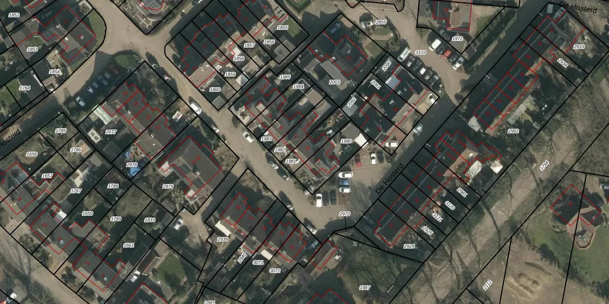 Gebruik de zoekbalk of klik op een perceel voor informatie over de adressen binnen dit perceel.