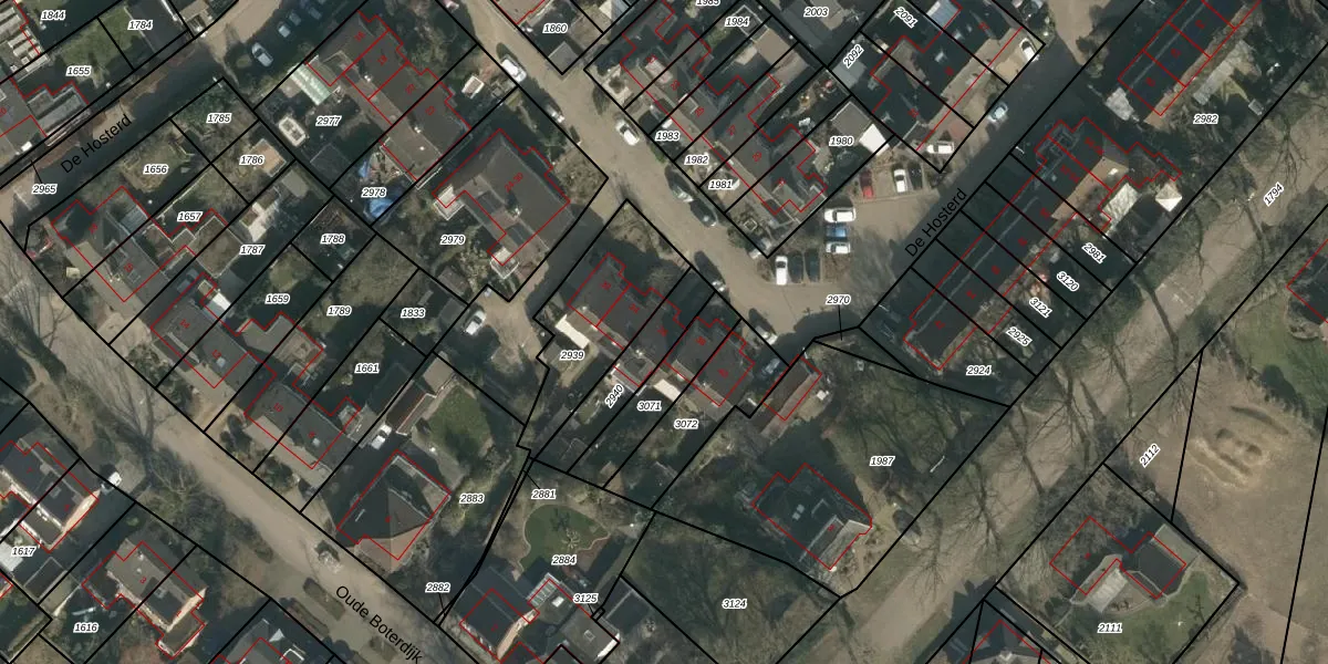 Gebruik de zoekbalk of klik op een perceel voor informatie over de adressen binnen dit perceel.