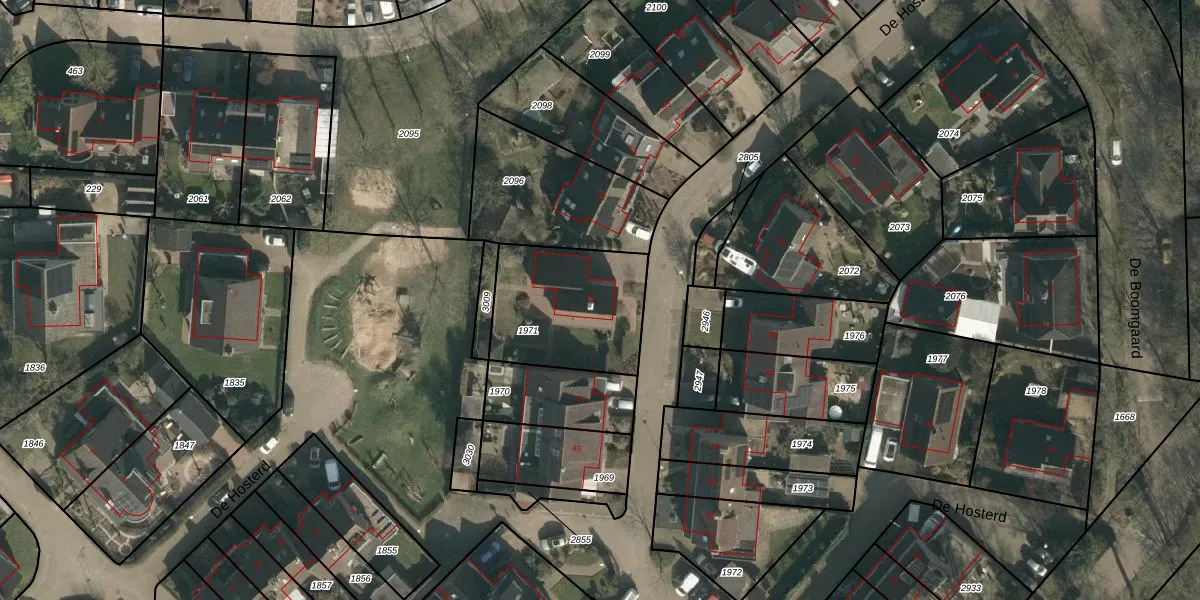 Gebruik de zoekbalk of klik op een perceel voor informatie over de adressen binnen dit perceel.