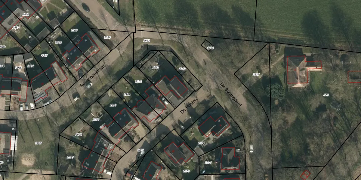 Gebruik de zoekbalk of klik op een perceel voor informatie over de adressen binnen dit perceel.