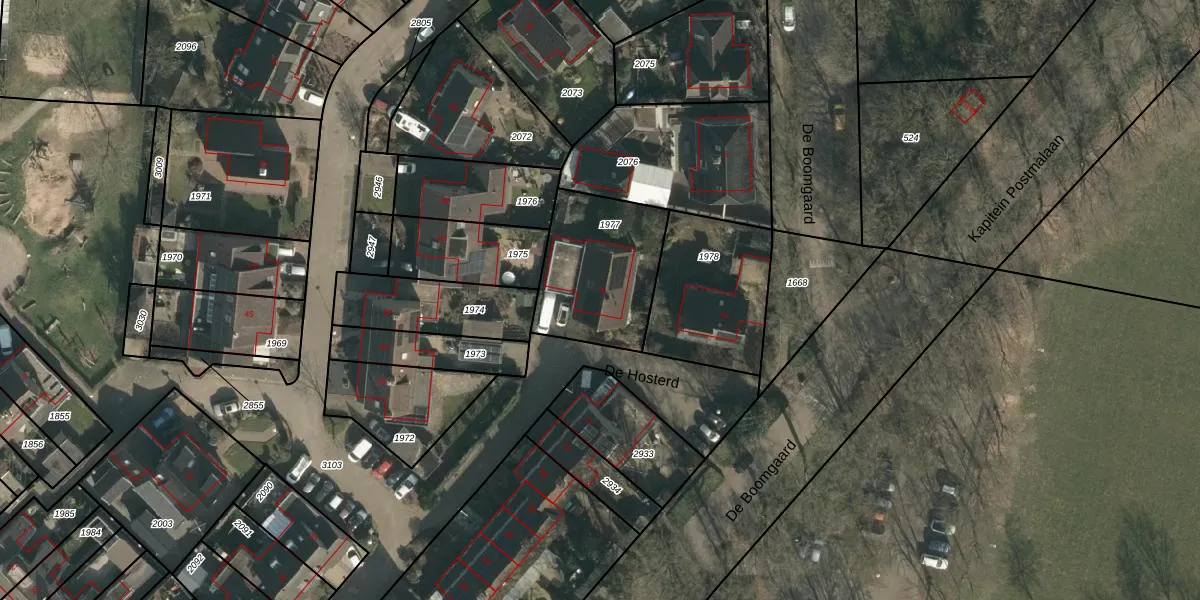 Het perceel waarop De Hosterd 76 staat heeft een oppervlakte van 462 m². Dit is een groot perceel. De perceeloppervlakte wordt geregistreerd door het Kadaster. Gedetailleerde informatie over de maten van dit perceel kunt u vinden in het rapport Kadastrale kaart met maatvoering van De Hosterd 76.