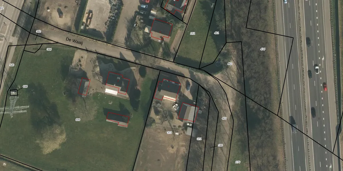 De Waaij 1 is gelegen op kadastraal perceel HMN01I373. Deze kadastrale aanduiding is uniek en wordt gebruikt door het Kadaster om eigendomsrechten en andere zakelijke rechten vast te leggen. Het perceel maakt onderdeel uit van de kadastrale gemeente Heumen.