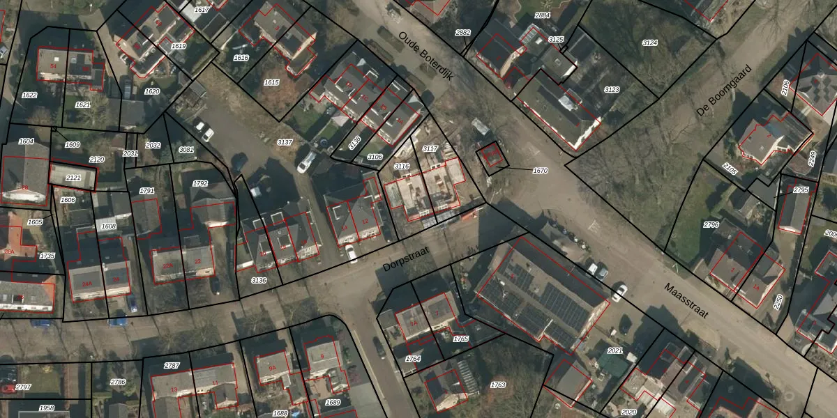 Het adres is gelegen op perceel 3116 in de sectie C en de kadastrale gemeente Heumen. De kadastrale aanduiding is aldus HMN01-C-3116. Het perceel is 198 m² groot. Dat is kleiner dan de gemiddelde perceeloppervlakte in Heumen, dat op 2943,38 m² ligt. De grootste perceeloppervlakte in de kadastrale gemeente is 50,5 ha. De kleinste oppervlakte bedraagt 0 m². Dit is het enige adres dat aanwezig is op het perceel. In de Basisregistratie Kadaster (BRK) werden de grenzen van het perceel geregistreerd op 29-12-2025.