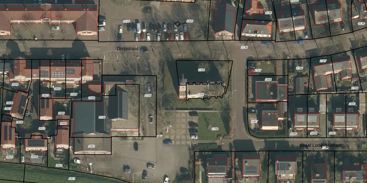 Het perceel waarop Dorpstraat 19 staat heeft een oppervlakte van 9371 m². Dit is een zeer groot perceel. De perceeloppervlakte wordt geregistreerd door het Kadaster. Gedetailleerde informatie over de maten van dit perceel kunt u vinden in het rapport Kadastrale kaart met maatvoering van Dorpstraat 19.