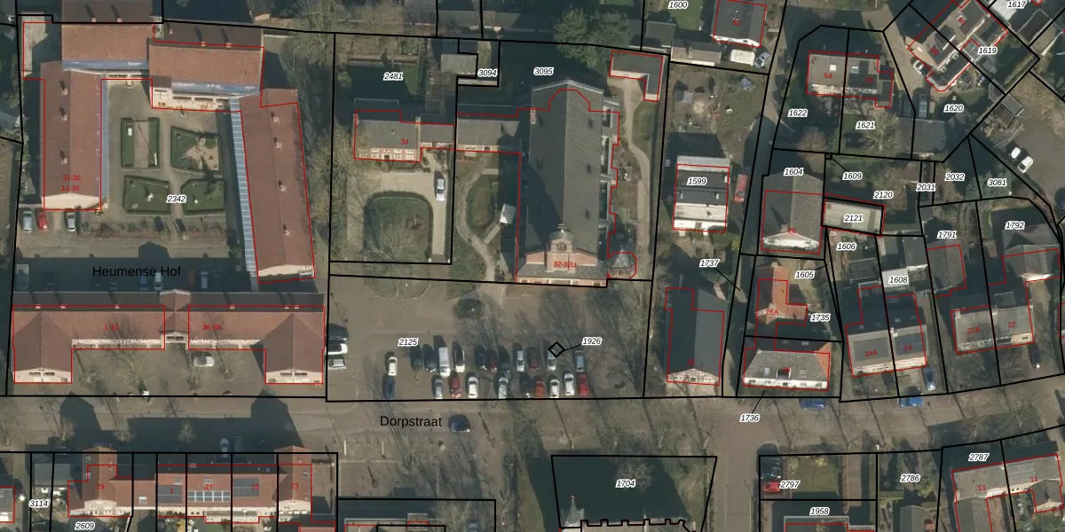 Dorpstraat 32-A is gelegen op kadastraal perceel HMN01C3095. Deze kadastrale aanduiding is uniek en wordt gebruikt door het Kadaster om eigendomsrechten en andere zakelijke rechten vast te leggen. Het perceel maakt onderdeel uit van de kadastrale gemeente Heumen.