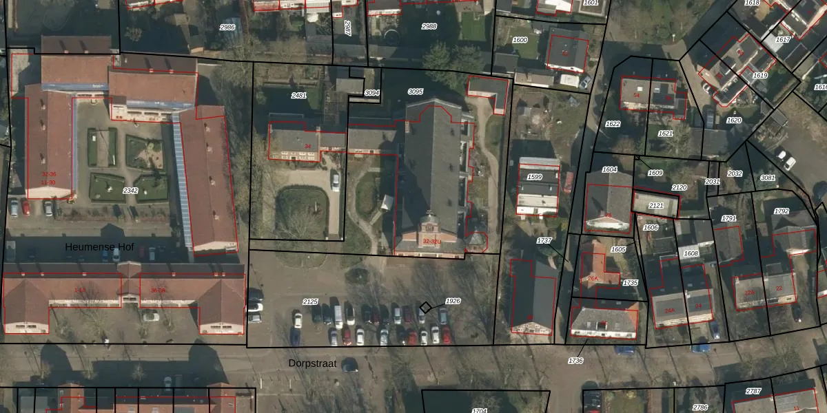 Dorpstraat 32-M is gelegen op kadastraal perceel HMN01C3095. Deze kadastrale aanduiding is uniek en wordt gebruikt door het Kadaster om eigendomsrechten en andere zakelijke rechten vast te leggen. Het perceel maakt onderdeel uit van de kadastrale gemeente Heumen.