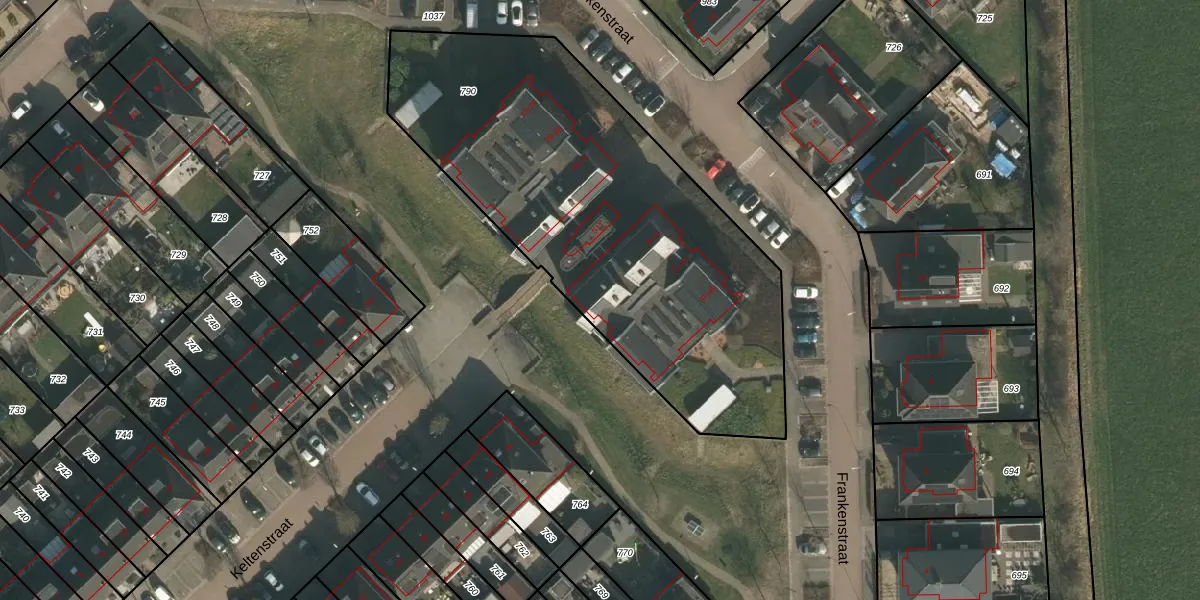 Het perceel waarop Frankenstraat 43 staat heeft een oppervlakte van 2245 m². Dit is een zeer groot perceel. De perceeloppervlakte wordt geregistreerd door het Kadaster. Gedetailleerde informatie over de maten van dit perceel kunt u vinden in het rapport Kadastrale kaart met maatvoering van Frankenstraat 43.