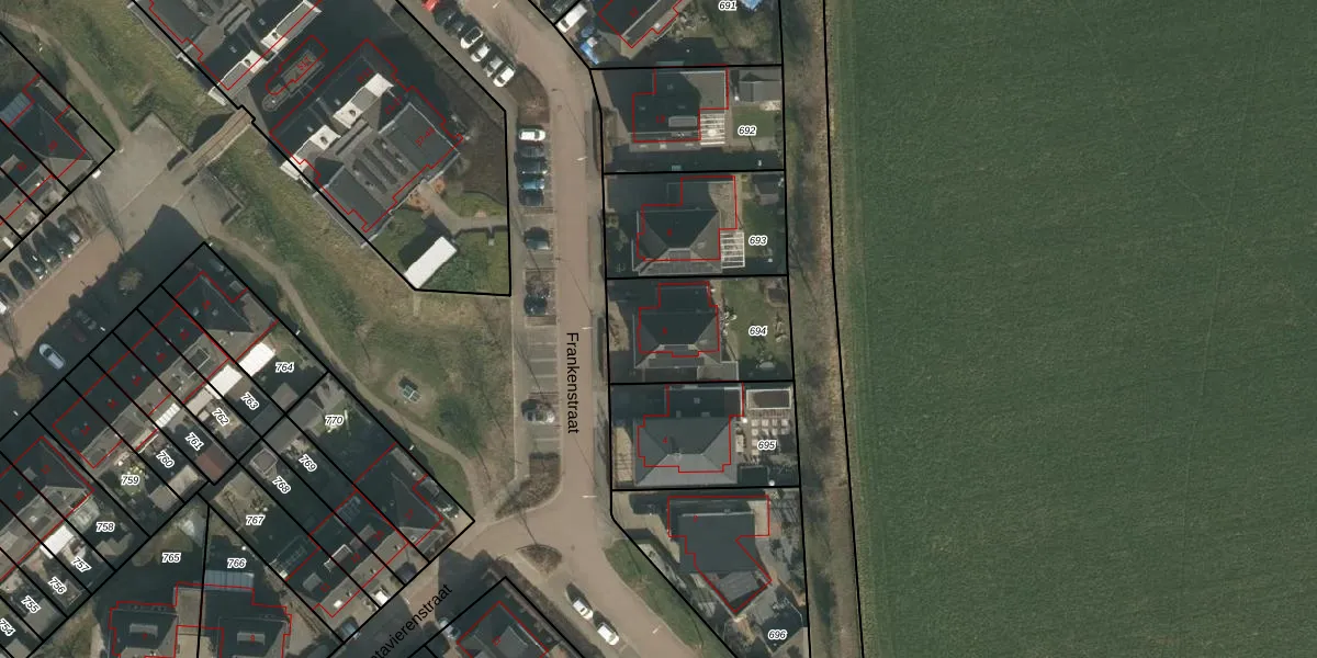 Frankenstraat 6 is gelegen op kadastraal perceel HMN01I694. Deze kadastrale aanduiding is uniek en wordt gebruikt door het Kadaster om eigendomsrechten en andere zakelijke rechten vast te leggen. Het perceel maakt onderdeel uit van de kadastrale gemeente Heumen.
