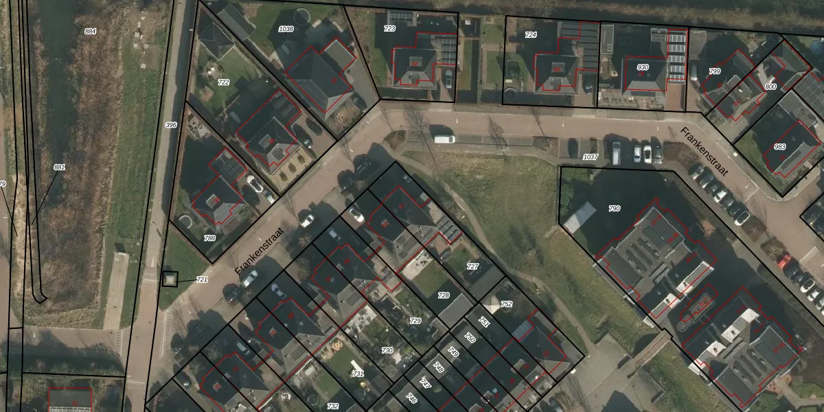 Het perceel waarop Frankenstraat 61 staat heeft een oppervlakte van 367 m². Dit is een groot perceel. De perceeloppervlakte wordt geregistreerd door het Kadaster. Gedetailleerde informatie over de maten van dit perceel kunt u vinden in het rapport Kadastrale kaart met maatvoering van Frankenstraat 61.