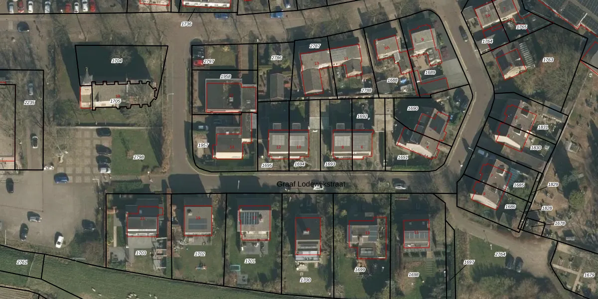 Het perceel waarop Graaf Lodewijkstraat 10 staat heeft een oppervlakte van 253 m². Dit is een middelgroot perceel. De perceeloppervlakte wordt geregistreerd door het Kadaster. Gedetailleerde informatie over de maten van dit perceel kunt u vinden in het rapport Kadastrale kaart met maatvoering van Graaf Lodewijkstraat 10.