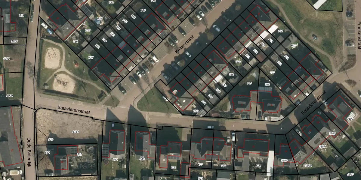 Het perceel waarop Keltenstraat 2 staat heeft een oppervlakte van 278 m². Dit is een middelgroot perceel. De perceeloppervlakte wordt geregistreerd door het Kadaster. Gedetailleerde informatie over de maten van dit perceel kunt u vinden in het rapport Kadastrale kaart met maatvoering van Keltenstraat 2.