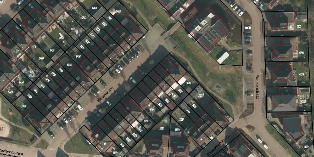 Het perceel waarop Keltenstraat 20 staat heeft een oppervlakte van 140 m². Dit is een middelgroot perceel. De perceeloppervlakte wordt geregistreerd door het Kadaster. Gedetailleerde informatie over de maten van dit perceel kunt u vinden in het rapport Kadastrale kaart met maatvoering van Keltenstraat 20.