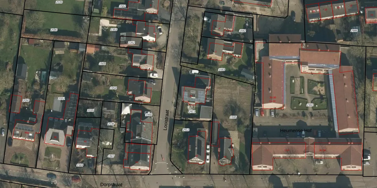 Looistraat 2-A is gelegen op kadastraal perceel HMN01C2911. Deze kadastrale aanduiding is uniek en wordt gebruikt door het Kadaster om eigendomsrechten en andere zakelijke rechten vast te leggen. Het perceel maakt onderdeel uit van de kadastrale gemeente Heumen.