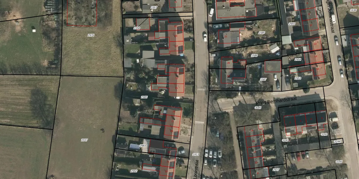Het perceel waarop Looistraat 31 staat heeft een oppervlakte van 2705 m². Dit is een zeer groot perceel. De perceeloppervlakte wordt geregistreerd door het Kadaster. Gedetailleerde informatie over de maten van dit perceel kunt u vinden in het rapport Kadastrale kaart met maatvoering van Looistraat 31.