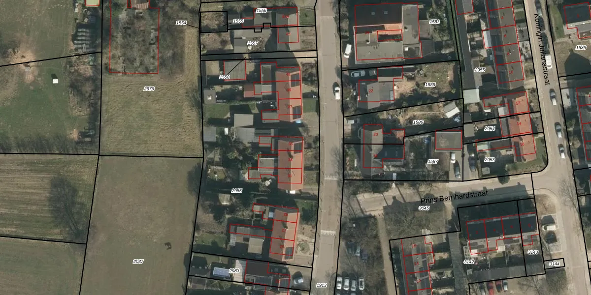 Het perceel waarop Looistraat 35 staat heeft een oppervlakte van 2705 m². Dit is een zeer groot perceel. De perceeloppervlakte wordt geregistreerd door het Kadaster. Gedetailleerde informatie over de maten van dit perceel kunt u vinden in het rapport Kadastrale kaart met maatvoering van Looistraat 35.