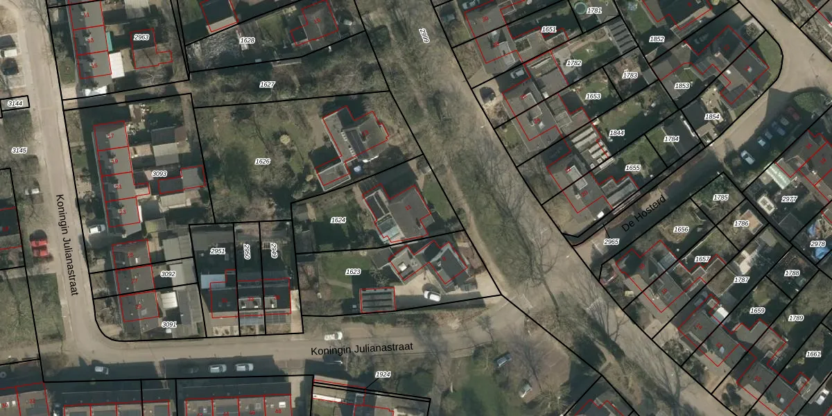 Gebruik de zoekbalk of klik op een perceel voor informatie over de adressen binnen dit perceel.