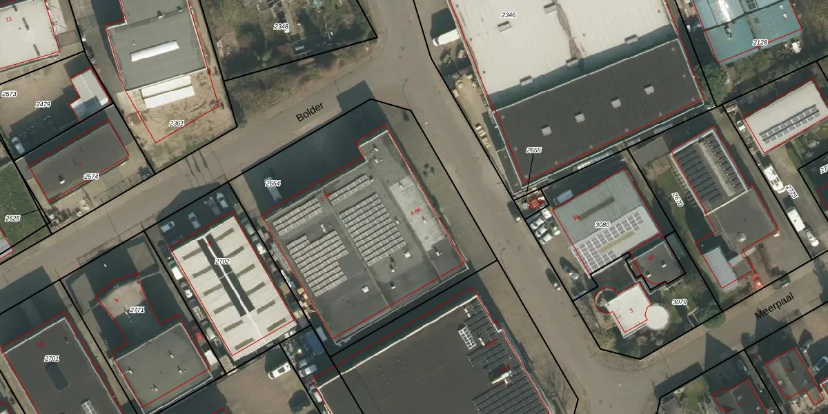 Het adres is gelegen op perceel 2654 in de sectie C en de kadastrale gemeente Heumen. De kadastrale aanduiding is aldus HMN01-C-2654. De gemiddelde perceelgrootte in Heumen is 2943,38 m². Dit perceel is kleiner: de perceeloppervlakte bedraagt 2235 m². Het grootste perceel in de kadastrale gemeente is 50,5 ha. Het kleinste perceel heeft een oppervlakte van 0 m². Er zijn 14 adressen aanwezig op het perceel. De huidige grenzen van het perceel zijn digitaal in de Basisregistratie Kadaster (BRK) geregistreerd op 05-11-2009.
