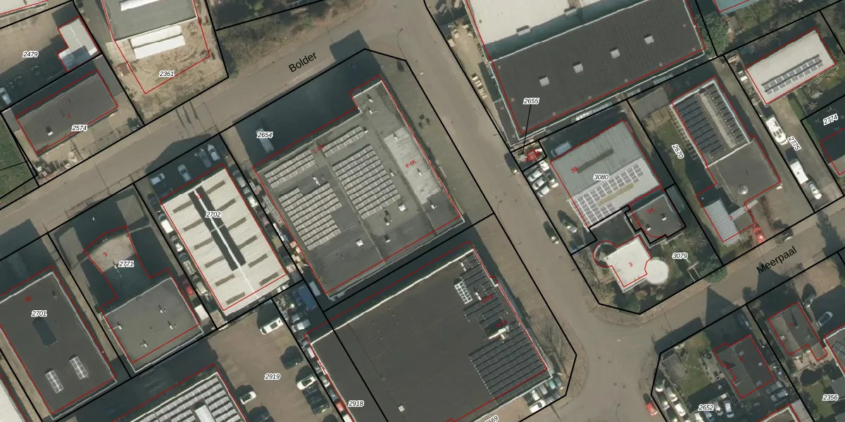 Het adres is gelegen op perceel 2654 in de sectie C en de kadastrale gemeente Heumen. De kadastrale aanduiding is aldus HMN01-C-2654. De gemiddelde perceelgrootte in Heumen is 2943,38 m². Dit perceel is kleiner: de perceeloppervlakte bedraagt 2235 m². De grootste perceeloppervlakte in de kadastrale gemeente is 50,5 ha. De kleinste oppervlakte bedraagt 0 m². Er zijn 14 adressen aanwezig op het perceel. In de Basisregistratie Kadaster (BRK) werden de grenzen van het perceel geregistreerd op 05-11-2009.