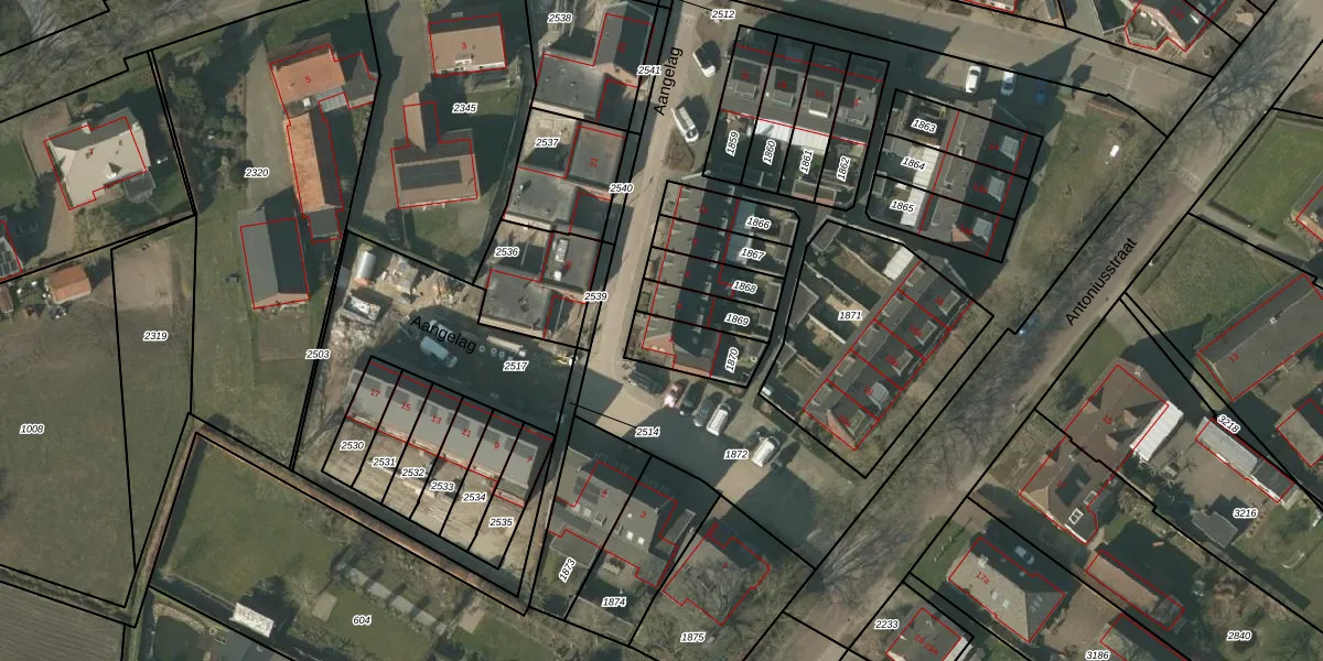 Aangelag 2 is gelegen op kadastraal perceel ATN01P1870. Deze kadastrale aanduiding is uniek en wordt gebruikt door het Kadaster om eigendomsrechten en andere zakelijke rechten vast te leggen. Het perceel maakt onderdeel uit van de kadastrale gemeente Asten.