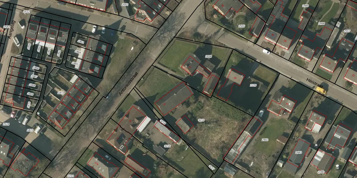 Antoniusstraat 13 is gelegen op kadastraal perceel ATN01E3219. Deze kadastrale aanduiding is uniek en wordt gebruikt door het Kadaster om eigendomsrechten en andere zakelijke rechten vast te leggen. Het perceel maakt onderdeel uit van de kadastrale gemeente Asten.