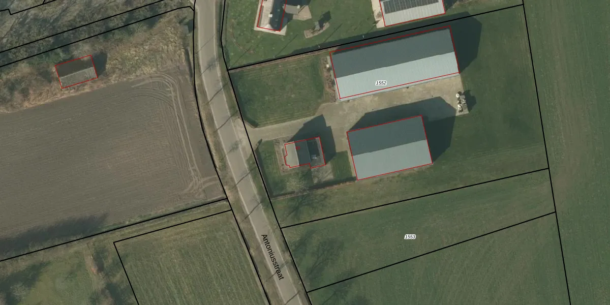 Het perceel waarop Antoniusstraat 63 staat heeft een oppervlakte van 5165 m². Dit is een zeer groot perceel. De perceeloppervlakte wordt geregistreerd door het Kadaster. Gedetailleerde informatie over de maten van dit perceel kunt u vinden in het rapport Kadastrale kaart met maatvoering van Antoniusstraat 63.
