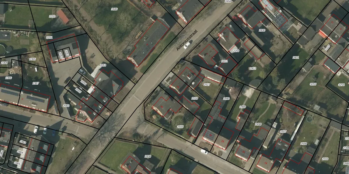 Het perceel waarop Antoniusstraat 9-a staat heeft een oppervlakte van 352 m². Dit is een groot perceel. De perceeloppervlakte wordt geregistreerd door het Kadaster. Gedetailleerde informatie over de maten van dit perceel kunt u vinden in het rapport Kadastrale kaart met maatvoering van Antoniusstraat 9-a.