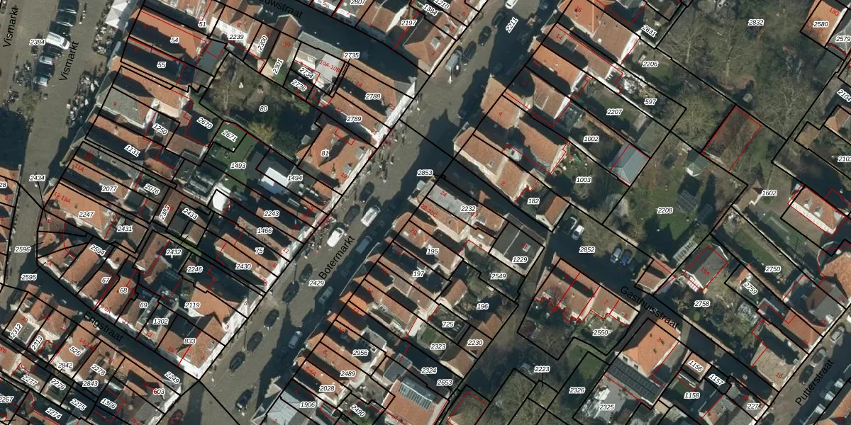 Het perceel waarop Botermarkt 22 staat heeft een oppervlakte van 210 m². Dit is een middelgroot perceel. De perceeloppervlakte wordt geregistreerd door het Kadaster. Gedetailleerde informatie over de maten van dit perceel kunt u vinden in het rapport Kadastrale kaart met maatvoering van Botermarkt 22.
