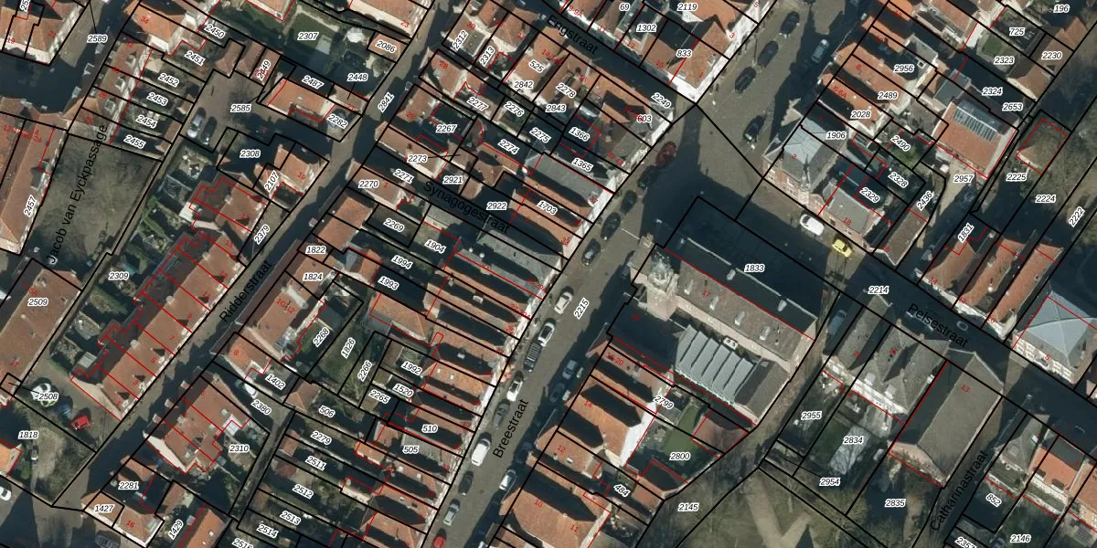 Het perceel waarop Breestraat 29 staat heeft een oppervlakte van 326 m². Dit is een groot perceel. De perceeloppervlakte wordt geregistreerd door het Kadaster. Gedetailleerde informatie over de maten van dit perceel kunt u vinden in het rapport Kadastrale kaart met maatvoering van Breestraat 29.