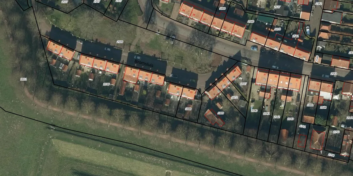 Bromsluis 18 is gelegen op kadastraal perceel HDN02A2036. Deze kadastrale aanduiding is uniek en wordt gebruikt door het Kadaster om eigendomsrechten en andere zakelijke rechten vast te leggen. Het perceel maakt onderdeel uit van de kadastrale gemeente Heusden.