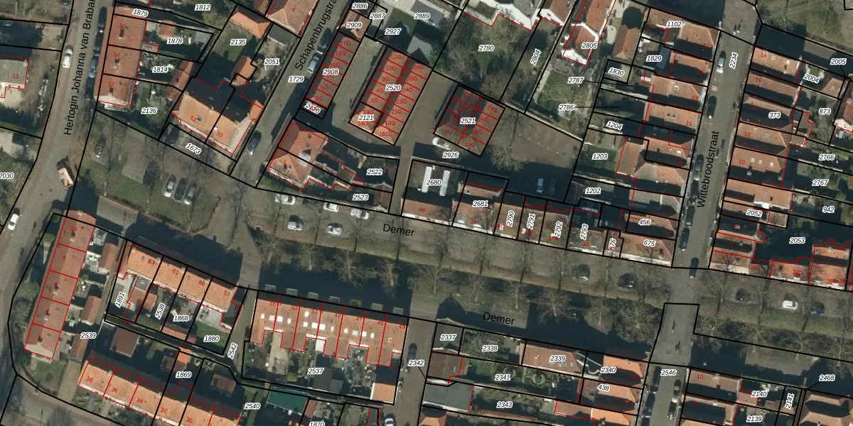 Gebruik de zoekbalk of klik op een perceel voor informatie over de adressen binnen dit perceel.