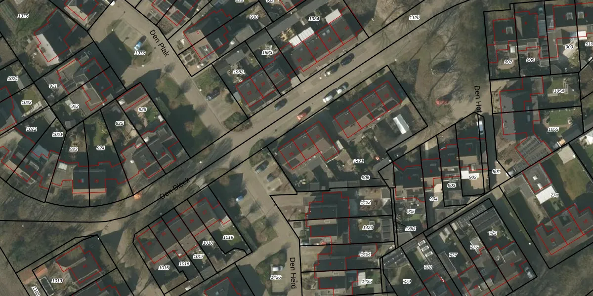 Het perceel waarop Den Bleek 25 staat heeft een oppervlakte van 1266 m². Dit is een zeer groot perceel. De perceeloppervlakte wordt geregistreerd door het Kadaster. Gedetailleerde informatie over de maten van dit perceel kunt u vinden in het rapport Kadastrale kaart met maatvoering van Den Bleek 25.