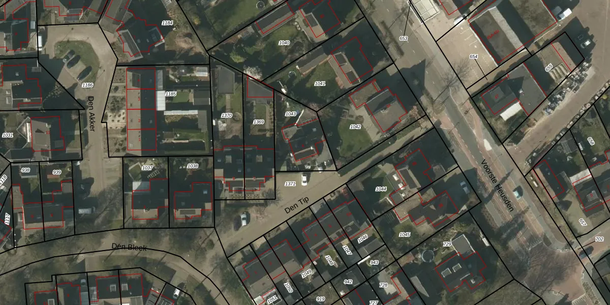 Het perceel waarop Den Tip 6 staat heeft een oppervlakte van 387 m². Dit is een groot perceel. De perceeloppervlakte wordt geregistreerd door het Kadaster. Gedetailleerde informatie over de maten van dit perceel kunt u vinden in het rapport Kadastrale kaart met maatvoering van Den Tip 6.