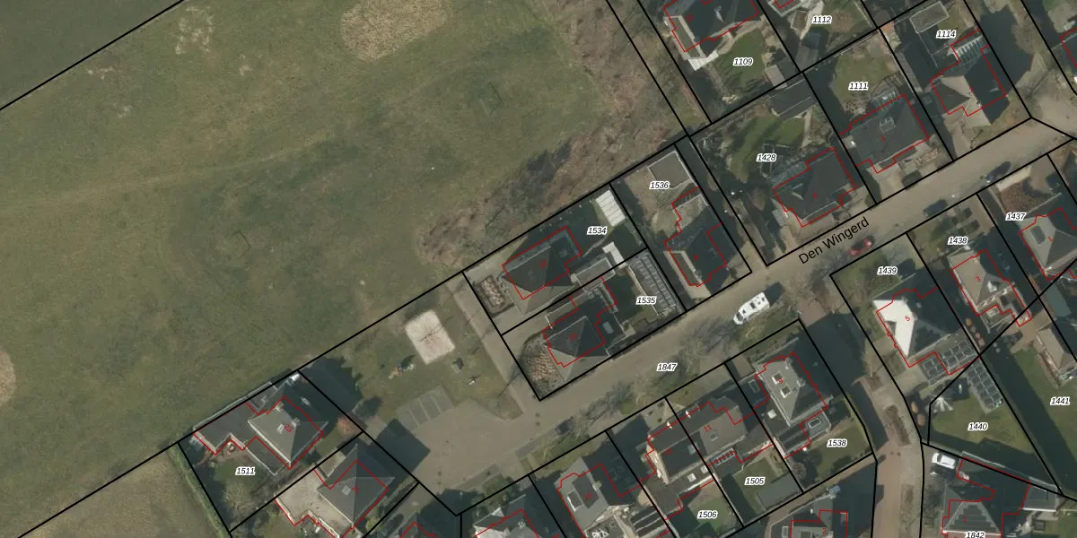 Het perceel waarop Den Wingerd 12 staat heeft een oppervlakte van 447 m². Dit is een groot perceel. De perceeloppervlakte wordt geregistreerd door het Kadaster. Gedetailleerde informatie over de maten van dit perceel kunt u vinden in het rapport Kadastrale kaart met maatvoering van Den Wingerd 12.